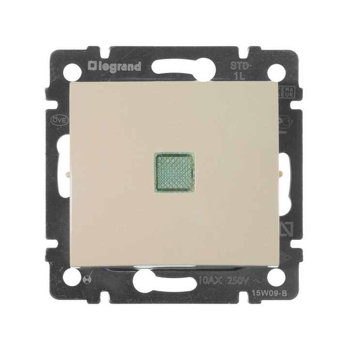 Механизм переключателя 1-кл. СП Valena проходн. на 2 напр. с зел. подсв. сл. кость Leg