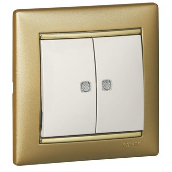 Механизм выключателя 2-кл. СП Valena 10А IP31 с 2 оранж. инд. сл. кость Leg