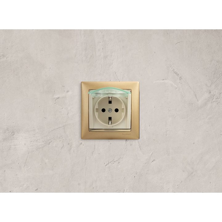 Механизм розетки 1-м СП Valena 16А IP44 2P+E защ. шторки с крышкой немецк. стандарт сл. кость Leg 774120