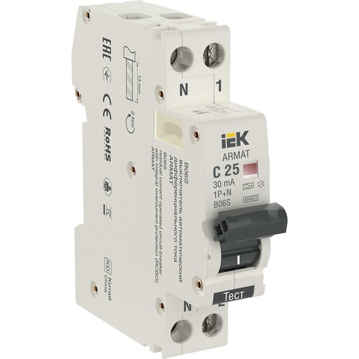 ARMAT Автоматический выключатель дифференциального тока B06S 1P+NP C25 30мА тип A (18мм) IEK
