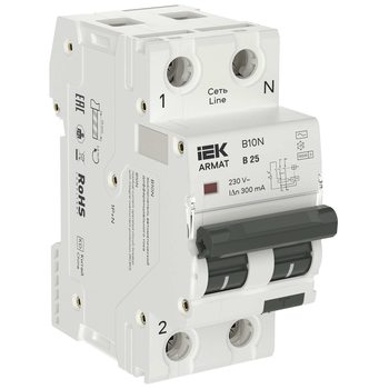 ARMAT Автоматический выключатель дифференциального тока B10N 1P+NP B25 300мА тип AC (36мм) IEK