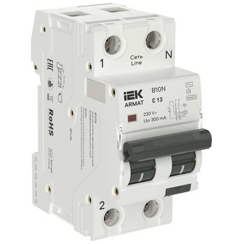 ARMAT Автоматический выключатель дифференциального тока B10N 1P+NP C13 300мА тип AC (36мм) IEK
