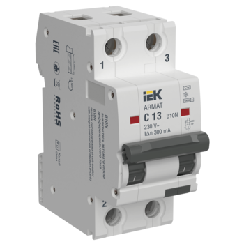 ARMAT Автоматический выключатель дифференциального тока B10N 2P C13 300мА тип A IEK