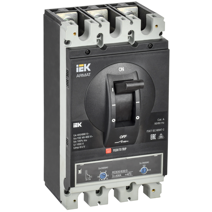 ARMAT Автоматический выключатель в литом корпусе 3P типоразмер I 150кА 630А расцепитель термомагнитный регулируемый IEK