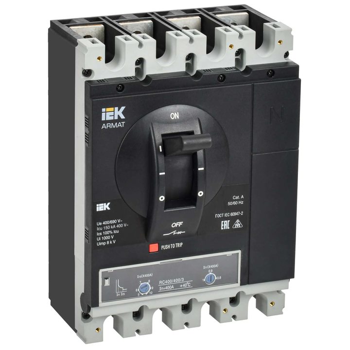 ARMAT Автоматический выключатель в литом корпусе 4P типоразмер H 150кА 400А расцепитель термомагнитный регулируемый IEK
