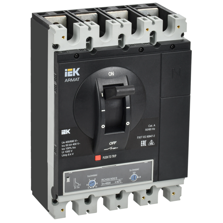 ARMAT Автоматический выключатель в литом корпусе 4P типоразмер H 50кА 400А расцепитель термомагнитный регулируемый IEK