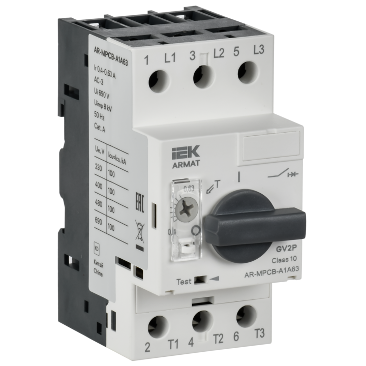 Автоматический выключатель защиты двигателя типа GV2P серии ARMAT предназначен для управления электроприводами с трехфазными асинхронными электродвигателями и для защиты от перегрузки, коротких замыканий и неполнофазных режимов работы.