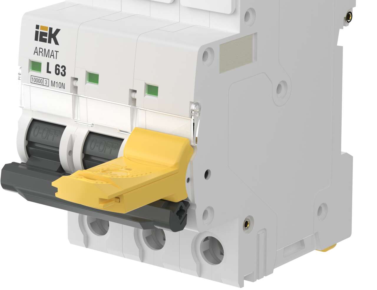 Быстрое крепление блокировки HLC в положении "включено" или "выключено". Блокировка не препятствует аварийному отключению защитных устройств.