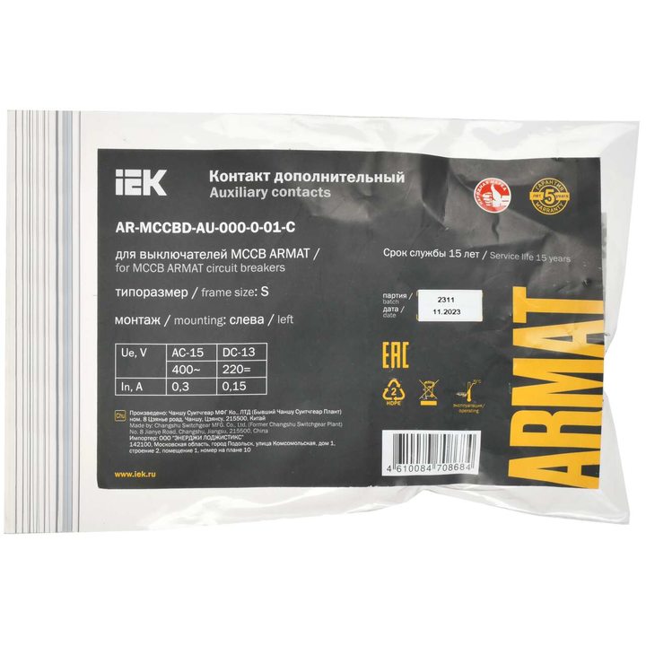 ARMAT Дополнительный контакт левый для MCCB типоразмер S 1NO1NC IEK