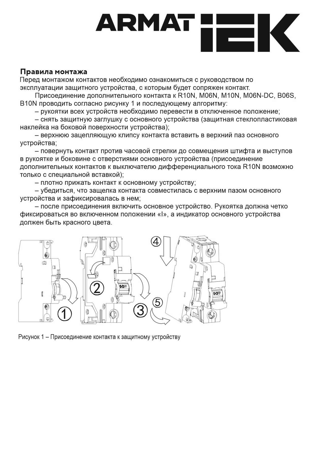 - Безвинтовое крепление к автоматическим выключателям M06N и M10N ARMAT.