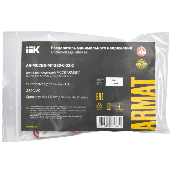 ARMAT Расцепитель минимального напряжения 230В AC для MCCB типоразмер A; D IEK