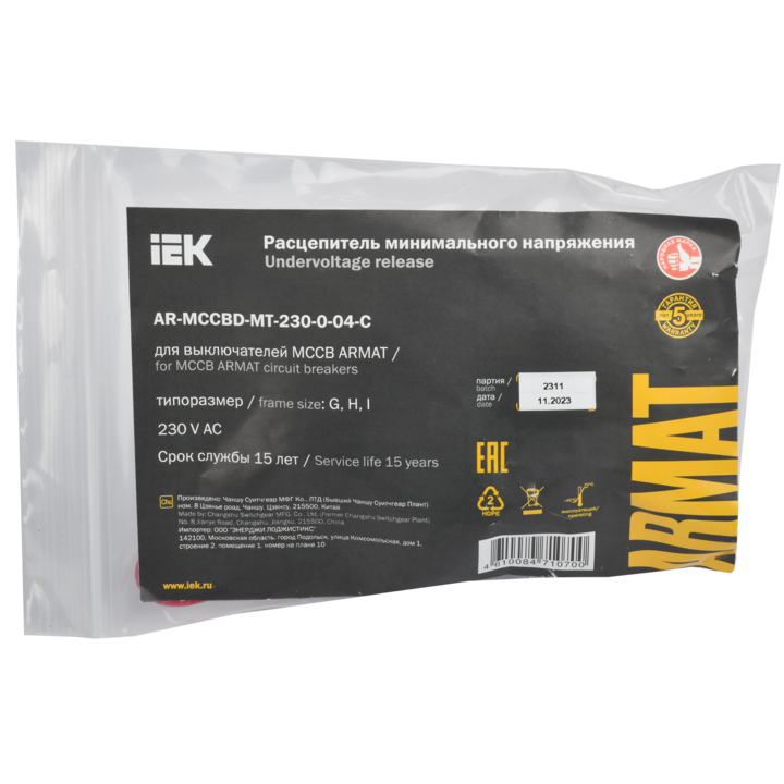 ARMAT Расцепитель минимального напряжения 230В AC для MCCB типоразмер G; H; I IEK