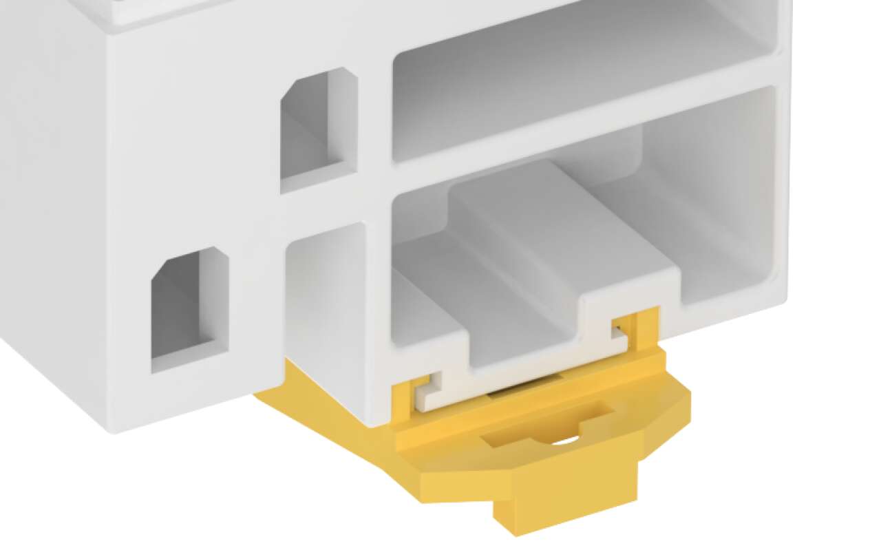 - Двухпозиционная защелка – обеспечивает удобное крепление розетки на DIN-рейке, что сокращает время на монтаж и демонтаж устройства;