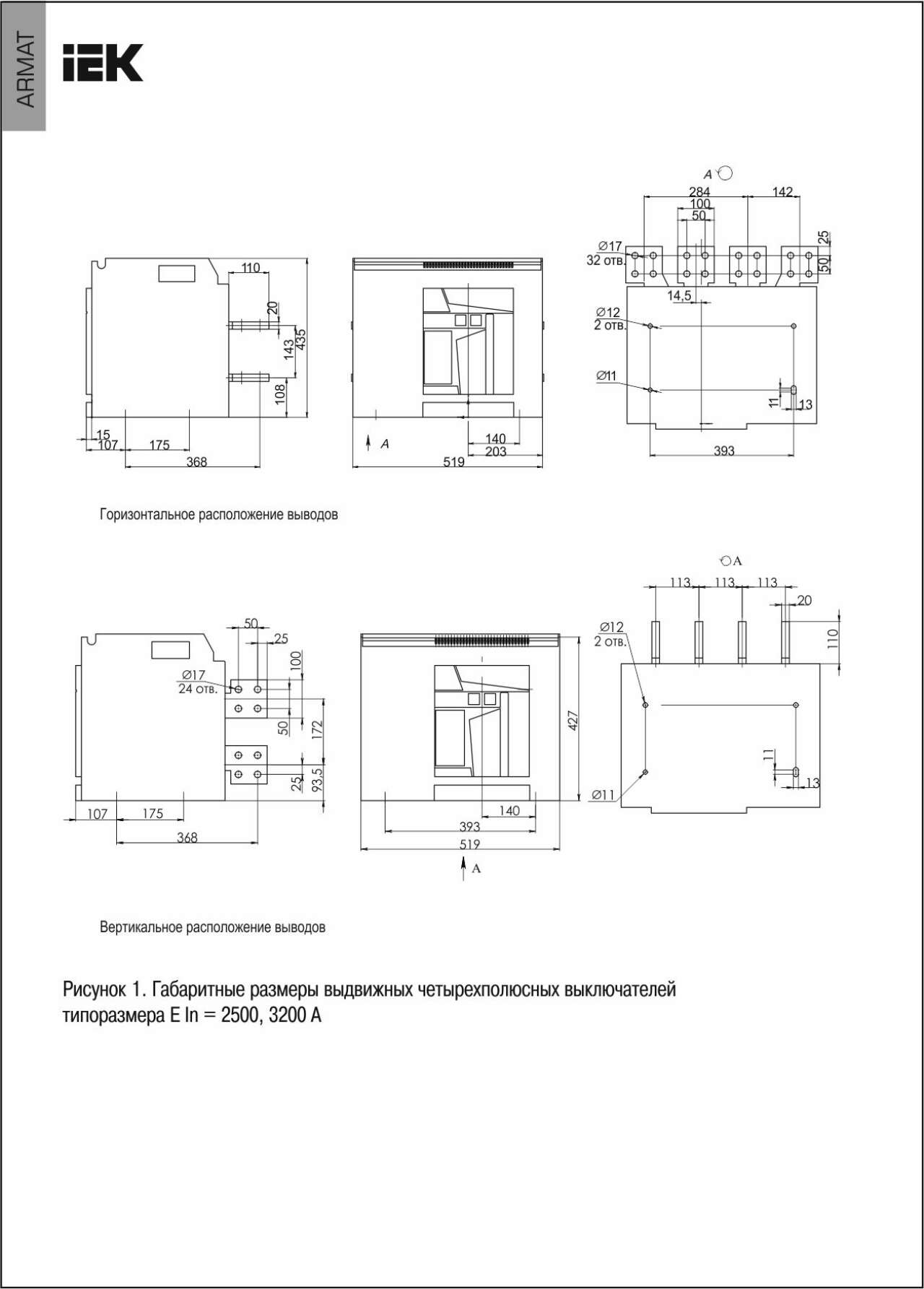 ARMAT Воздушный автоматический выключатель выдвижного исполнения 4P типоразмер E 85кА 2500А расцепитель TT с комплектом аксессуаров 220В: мотор привод катушка включения катушка отключения IEK