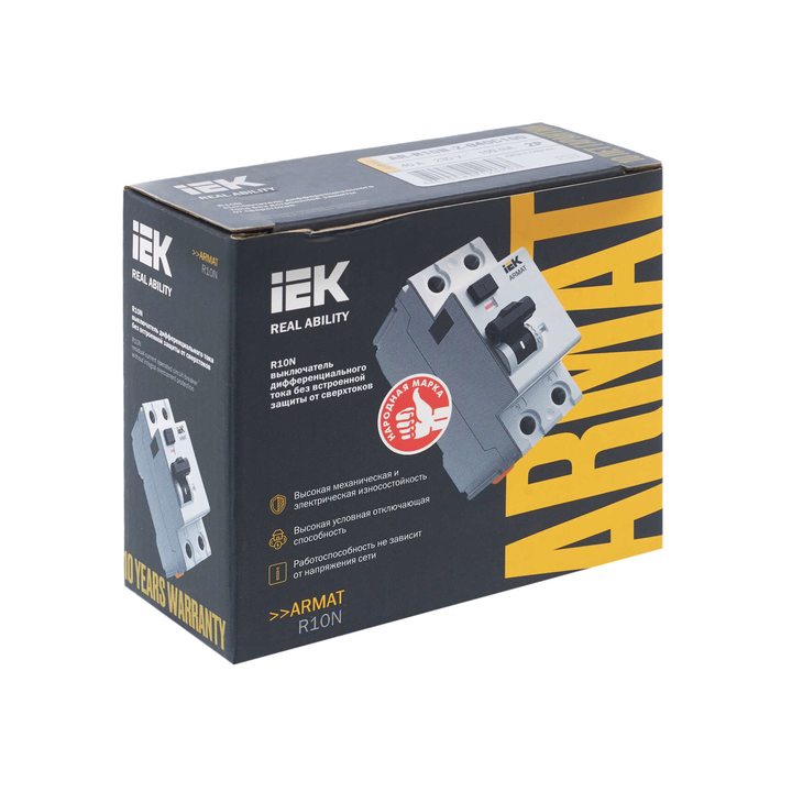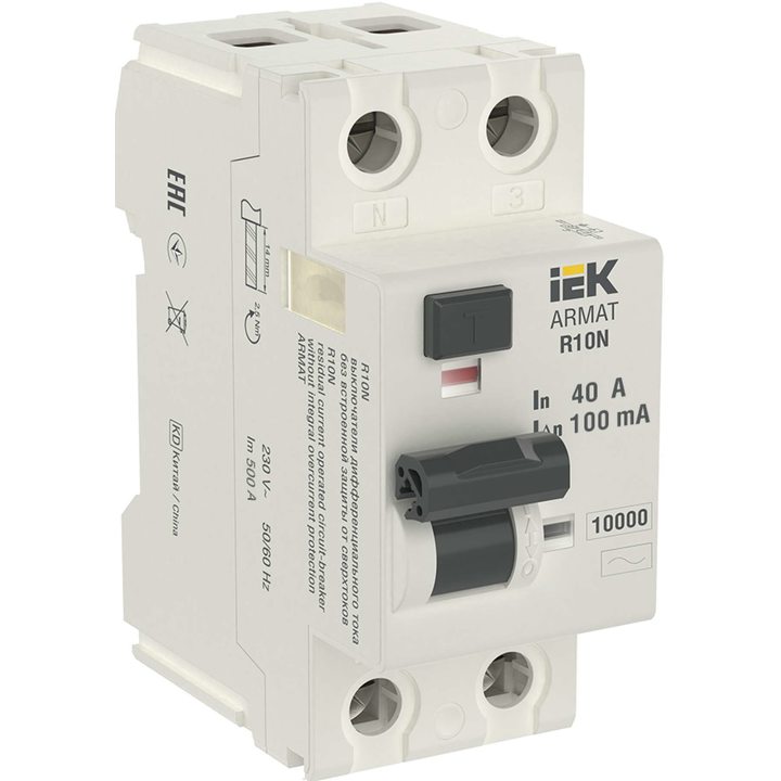 ARMAT Выключатель дифференциального тока R10N 2P 40А 100мА тип AC IEK