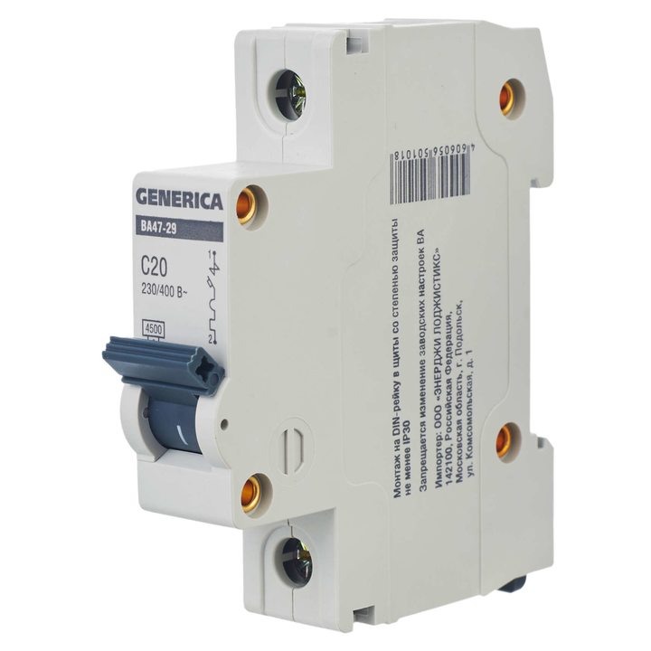 Выключатель автоматический модульный 1п C 20А 4.5кА ВА47-29 GENERICA IEK MVA25-1-020-C