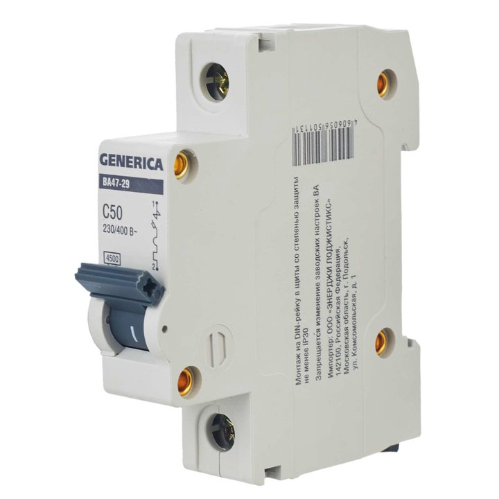 Выключатель автоматический модульный 1п C 50А 4.5кА ВА47-29 GENERICA IEK MVA25-1-050-C