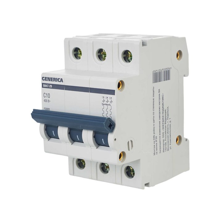 Выключатель автоматический модульный 3п C 10А 4.5кА ВА47-29 GENERICA IEK MVA25-3-010-C
