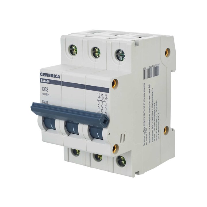 Выключатель автоматический модульный 3п C 63А 4.5кА ВА47-29 GENERICA IEK MVA25-3-063-C