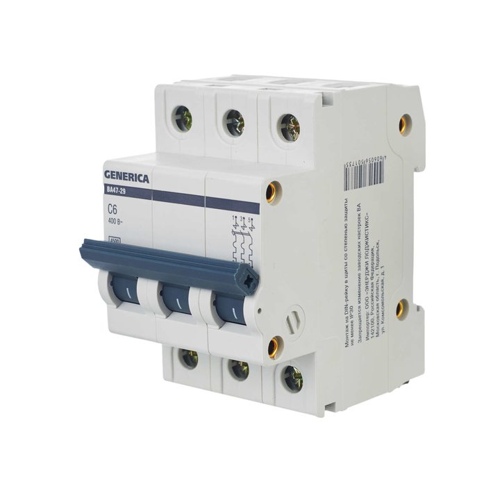Выключатель автоматический модульный 3п C 6А 4.5кА ВА47-29 GENERICA IEK MVA25-3-006-C