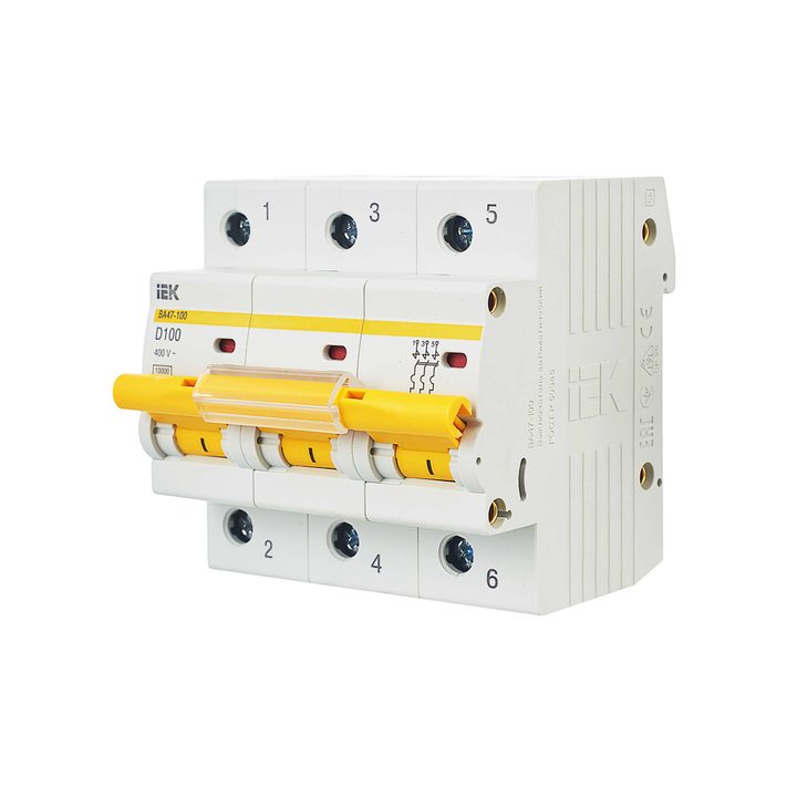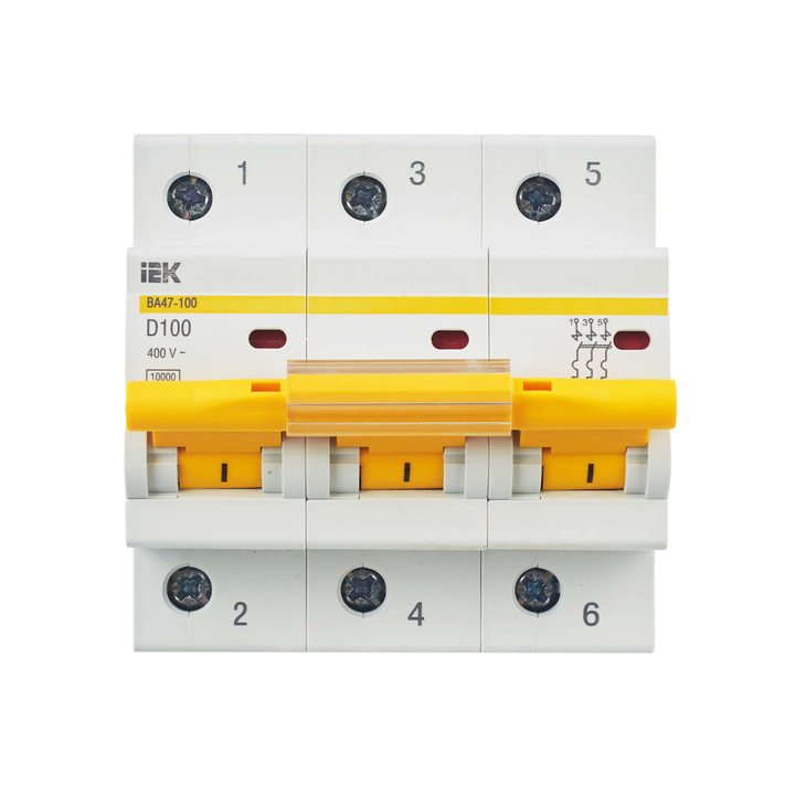 Выключатель автоматический модульный 3п D 100А 10кА ВА47-100 IEK MVA40-3-100-D