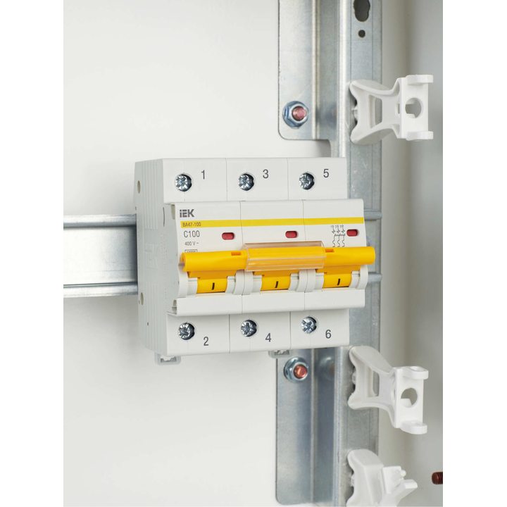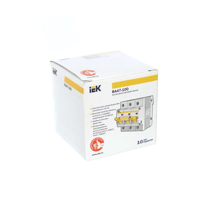 - Увеличенная коммутационная способность 10000А позволяет устанавливать ВА47-100 в качестве вводных автоматических выключателей.