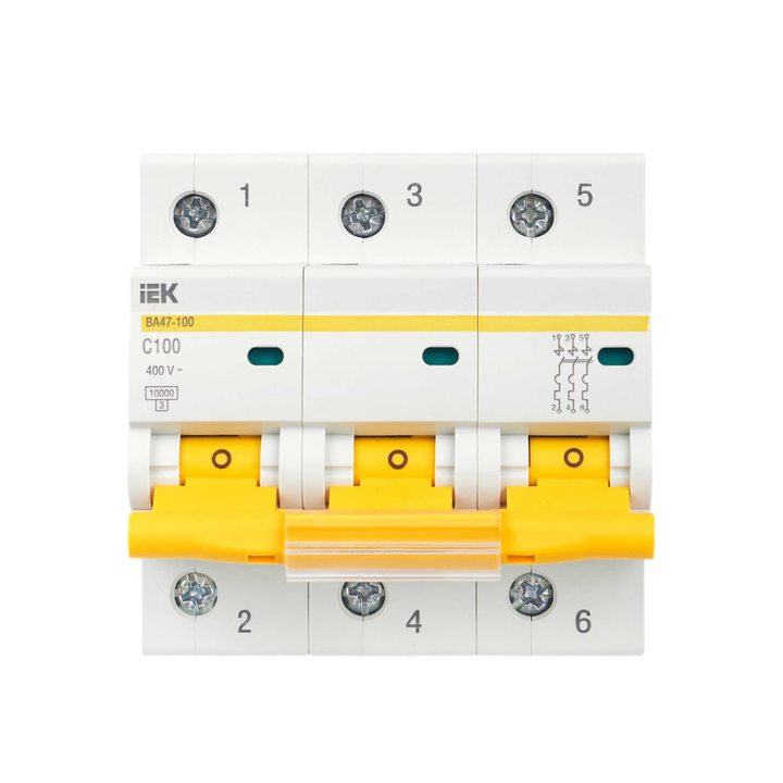 Выключатель автоматический модульный 3п C 100А 10кА ВА47-100 IEK MVA40-3-100-C