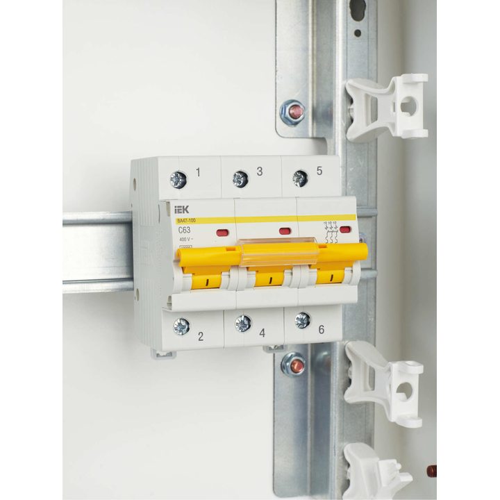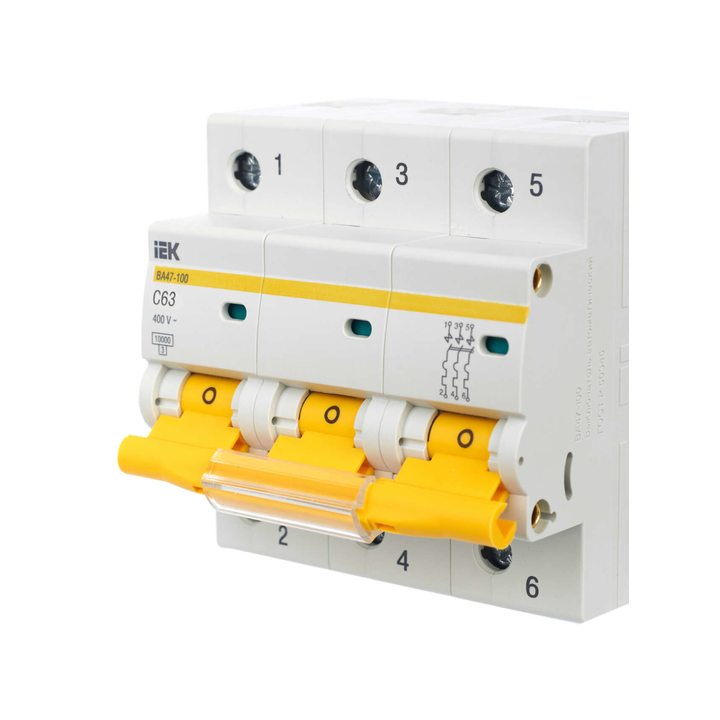 Выключатель автоматический модульный 3п C 63А 10кА ВА47-100 IEK MVA40-3-063-C