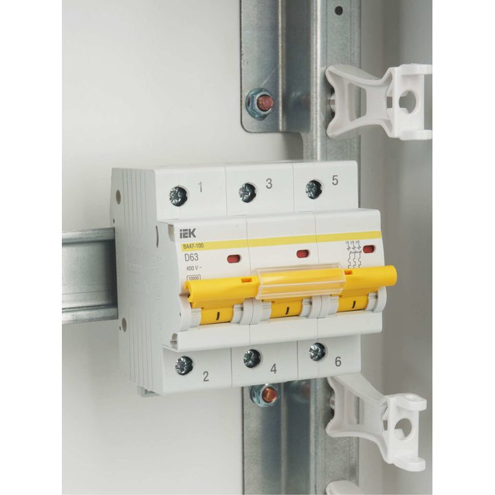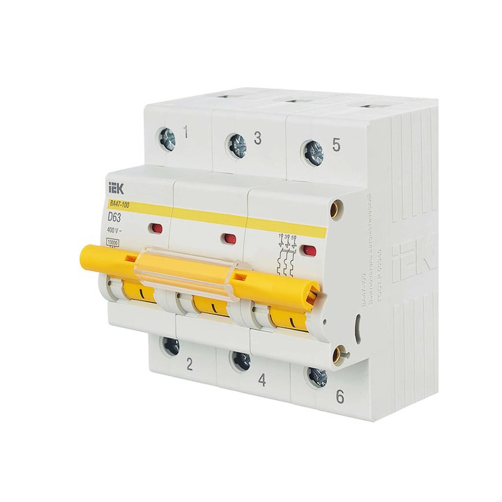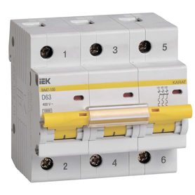 Выключатель автоматический модульный 3п D 63А 10кА ВА47-100 IEK MVA40-3-063-D