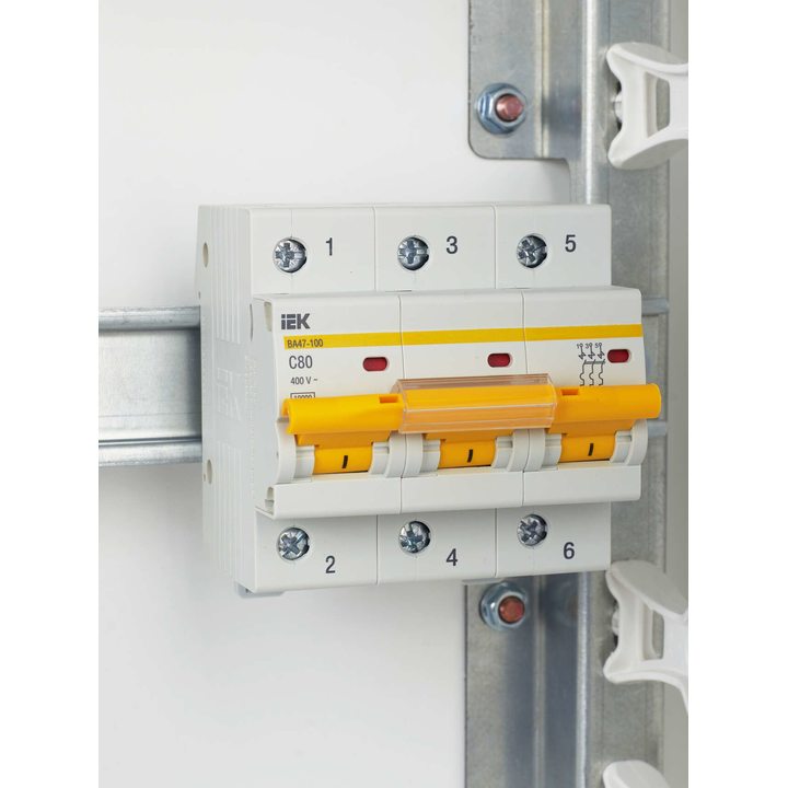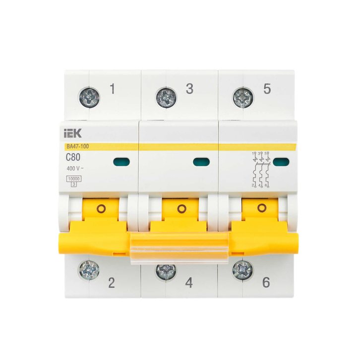 Выключатель автоматический модульный 3п C 80А 10кА ВА47-100 IEK MVA40-3-080-C