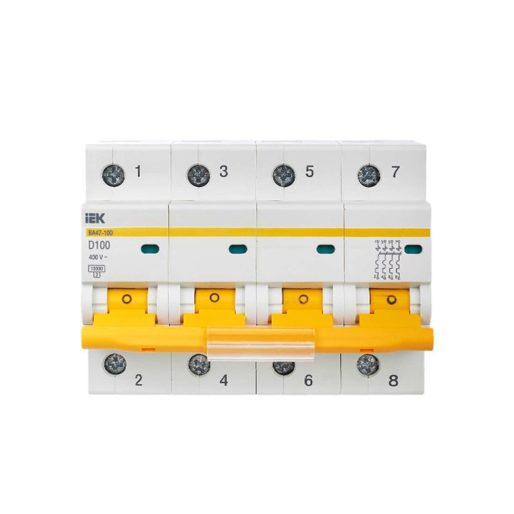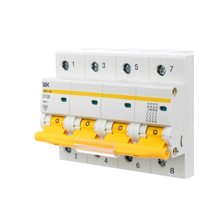 - Увеличенная коммутационная способность 10000А позволяет устанавливать ВА47-100 в качестве вводных автоматических выключателей.