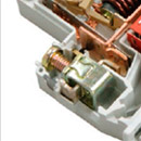 Дополнительная защита от прогорания корпуса автоматического выключателя и отвод тепла за счет пластиковой и металлической антипрогарных пластин.