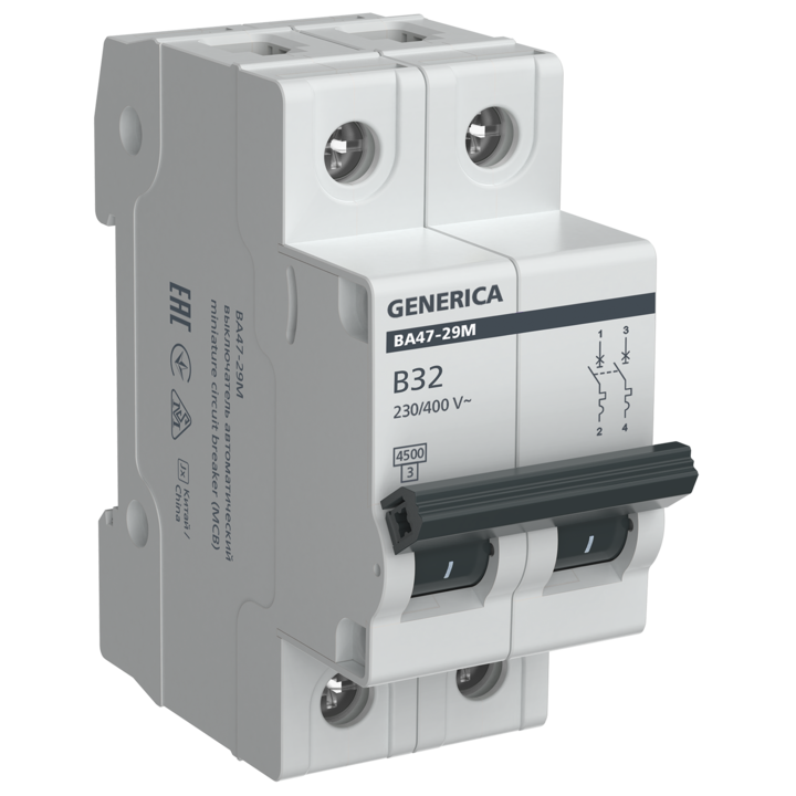 Автоматический выключатель ВА47-29М 2P 32А 4,5кА B GENERICA