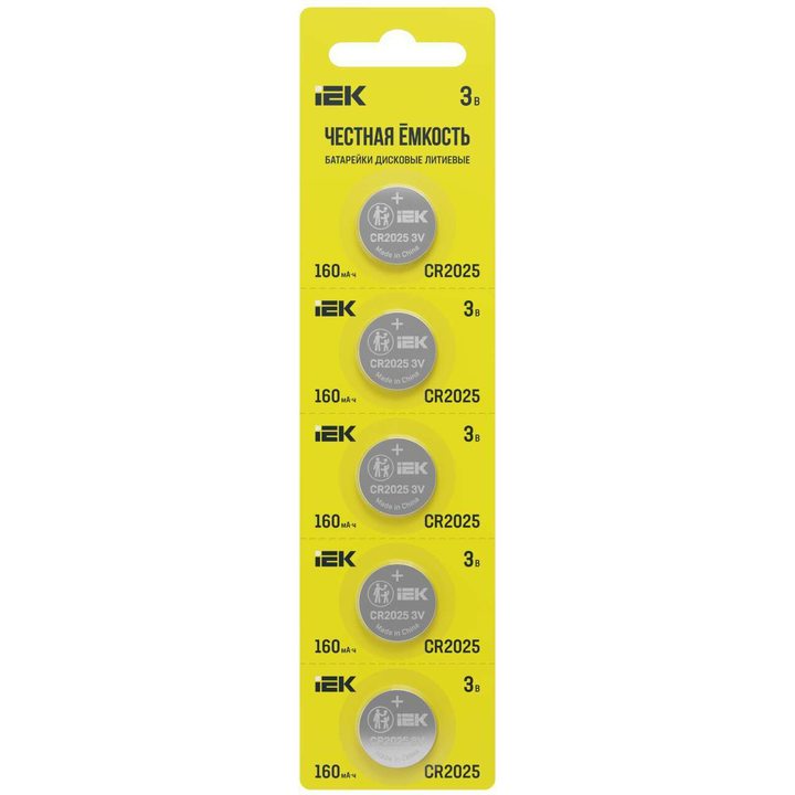 Батарейка дисковая литиевая CR2025 (5шт/отрывной блистер) IEK