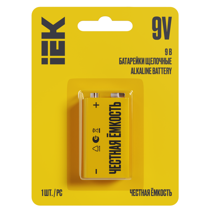 Батарейка щелочная Alkaline 6LR61 9V (1шт/блистер) IEK