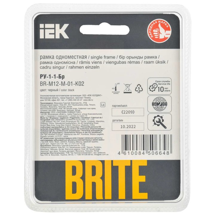 BRITE Рамка 1-местная РУ-1-1-Бр металл черный RE IEK