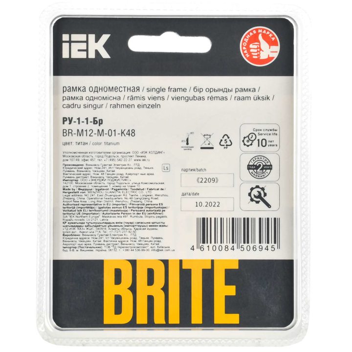 BRITE Рамка 1-местная РУ-1-1-Бр металл титан RE IEK