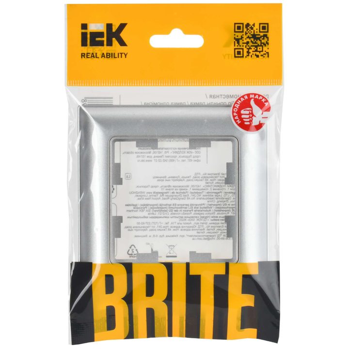 BRITE Рамка 1-местная РУ-1-Бр алюминий/алюминий IEK