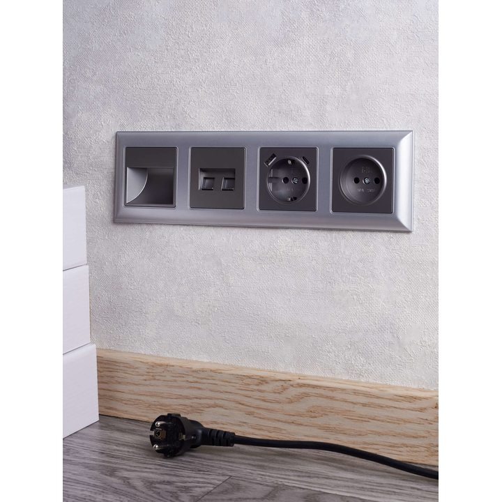 BRITE Рамка 4-местная РУ-4-Бр алюминий/алюминий IEK