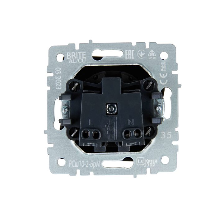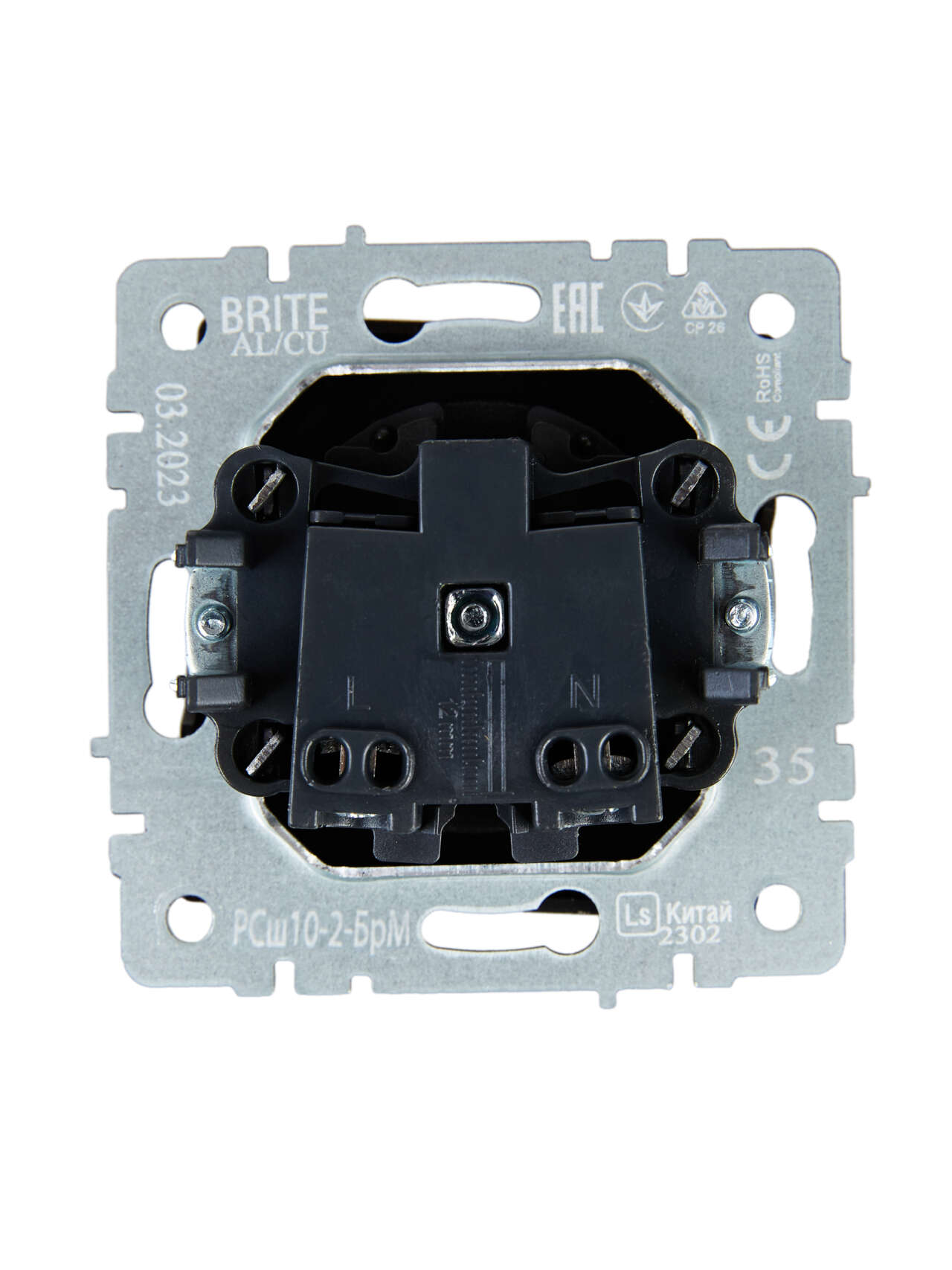BRITE Розетка 1-местная без заземления с защитными шторками 10А РСш10-2-БрМ маренго IEK