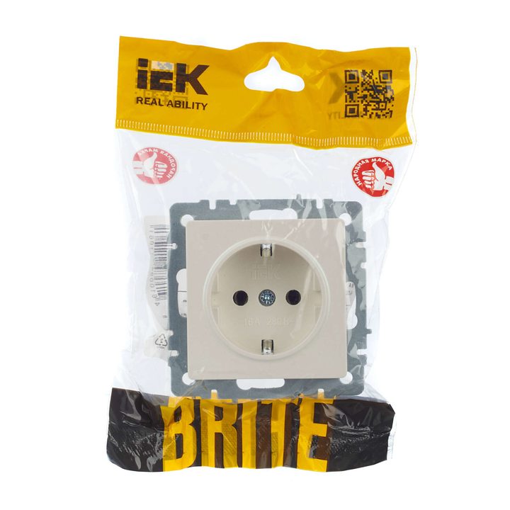 BRITE Розетка 1-местная с заземлением без защитных шторок 16А РС11-1-0-БрЖ жемчуг IEK