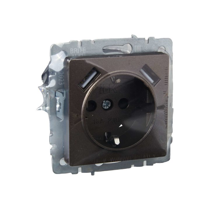 BRITE Розетка 1-местная с заземлением с защитными шторками 16А с USB A+A 5В 2,1А РЮш10-1-БрТБ темная бронза IEK