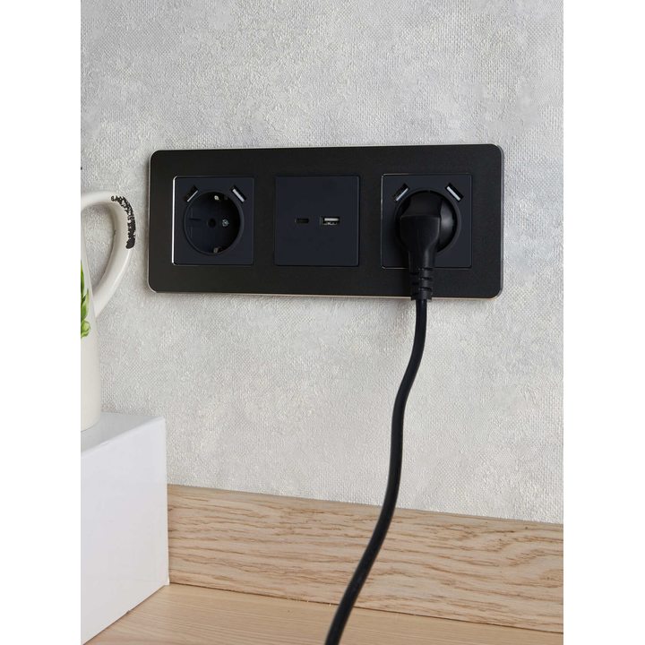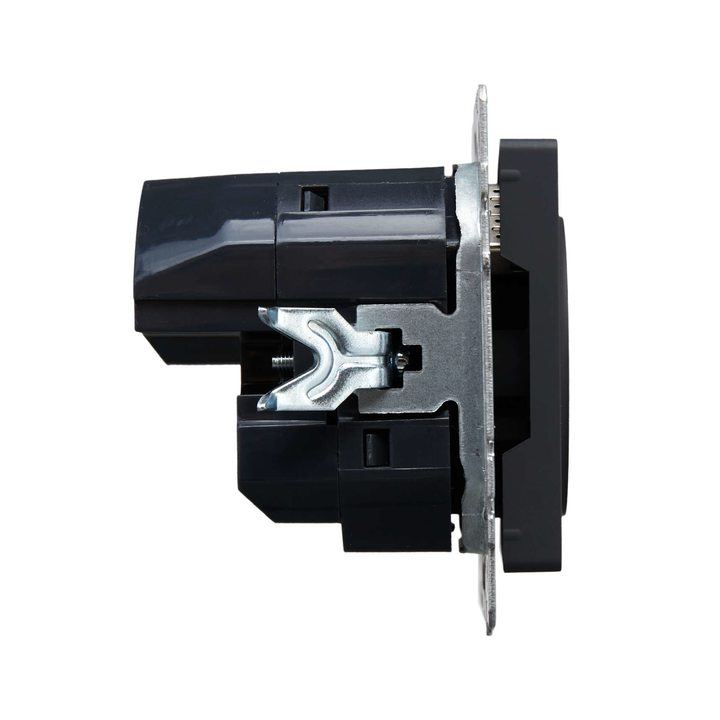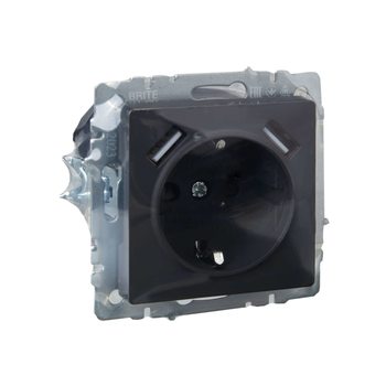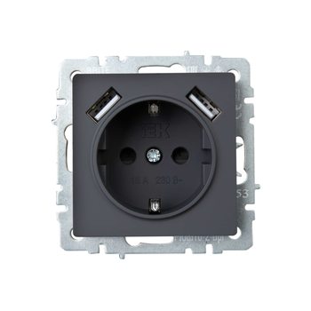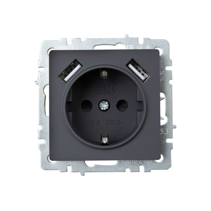 BRITE Розетка 1-местная с заземлением с защитными шторками 16А с USB A+A 5В 3,1А РЮш10-2-БрГ графит IEK