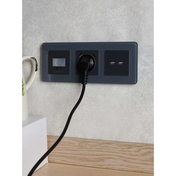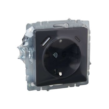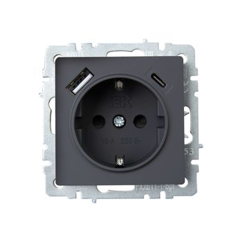 BRITE Розетка 1-местная с заземлением с защитными шторками 16А с USB A+C 18Вт РЮш11-1-БрГ графит IEK