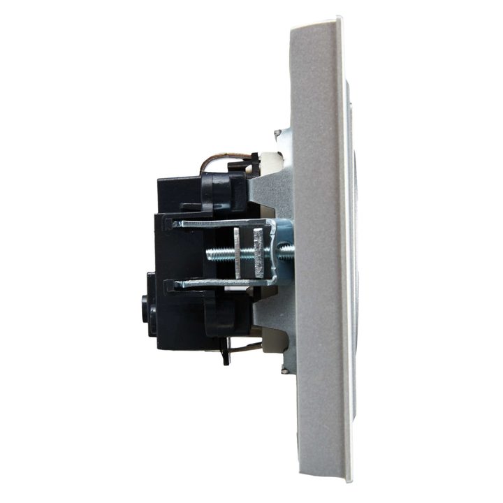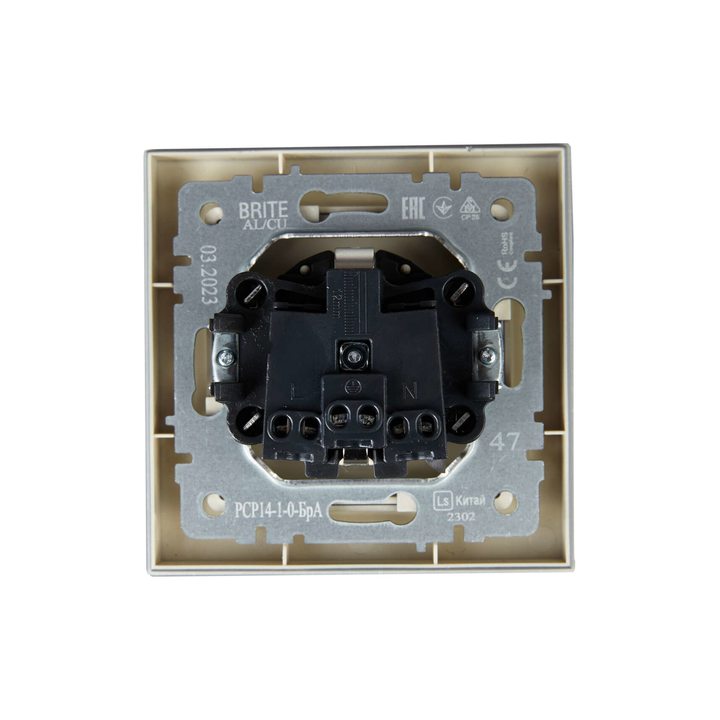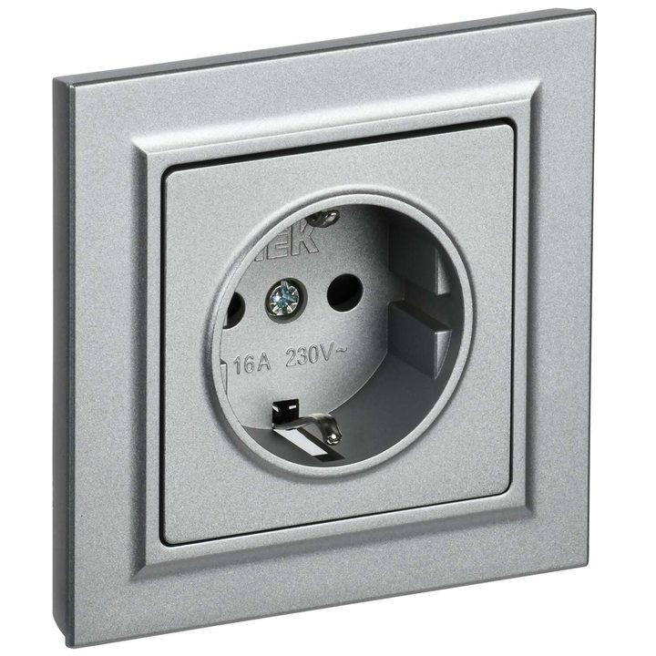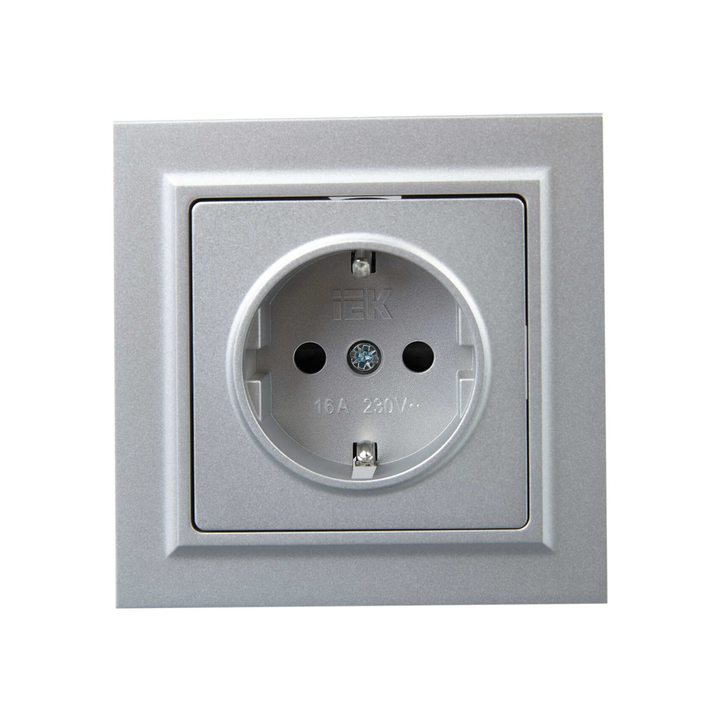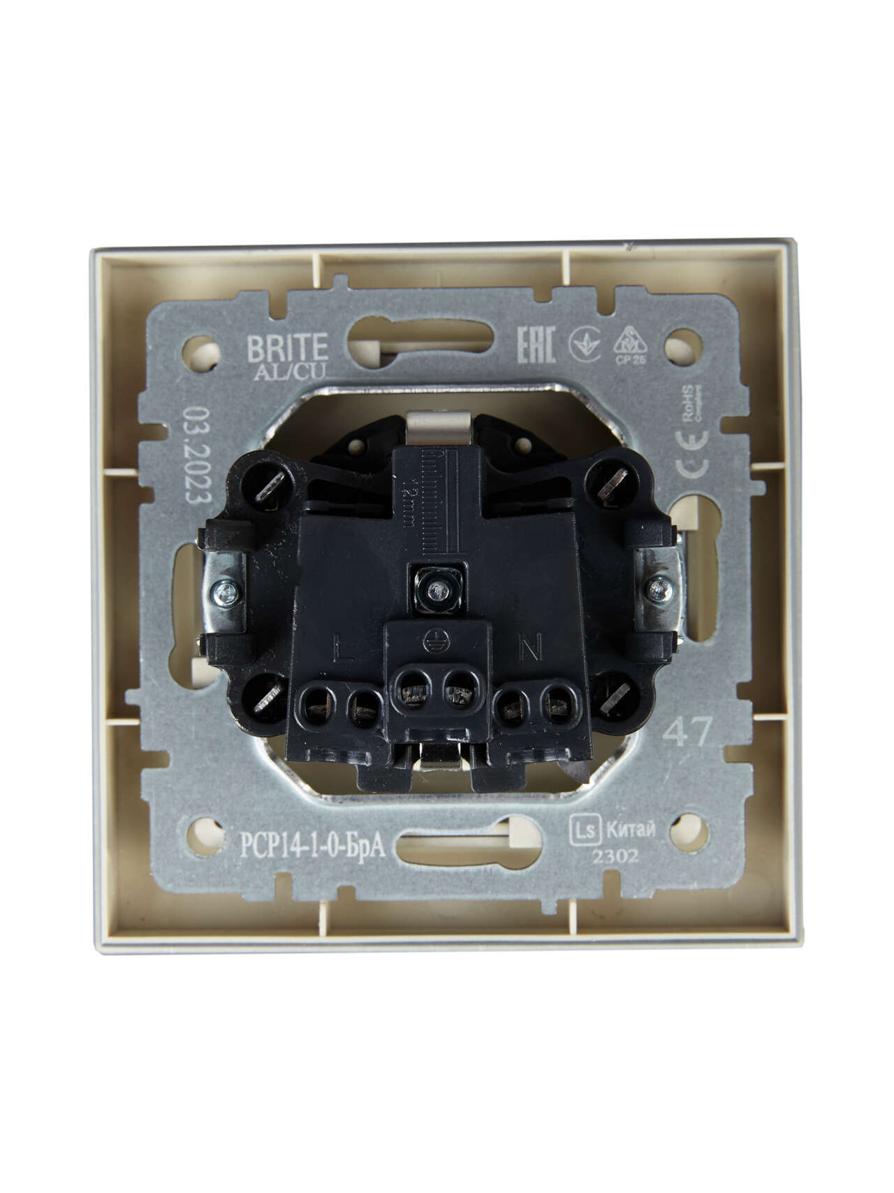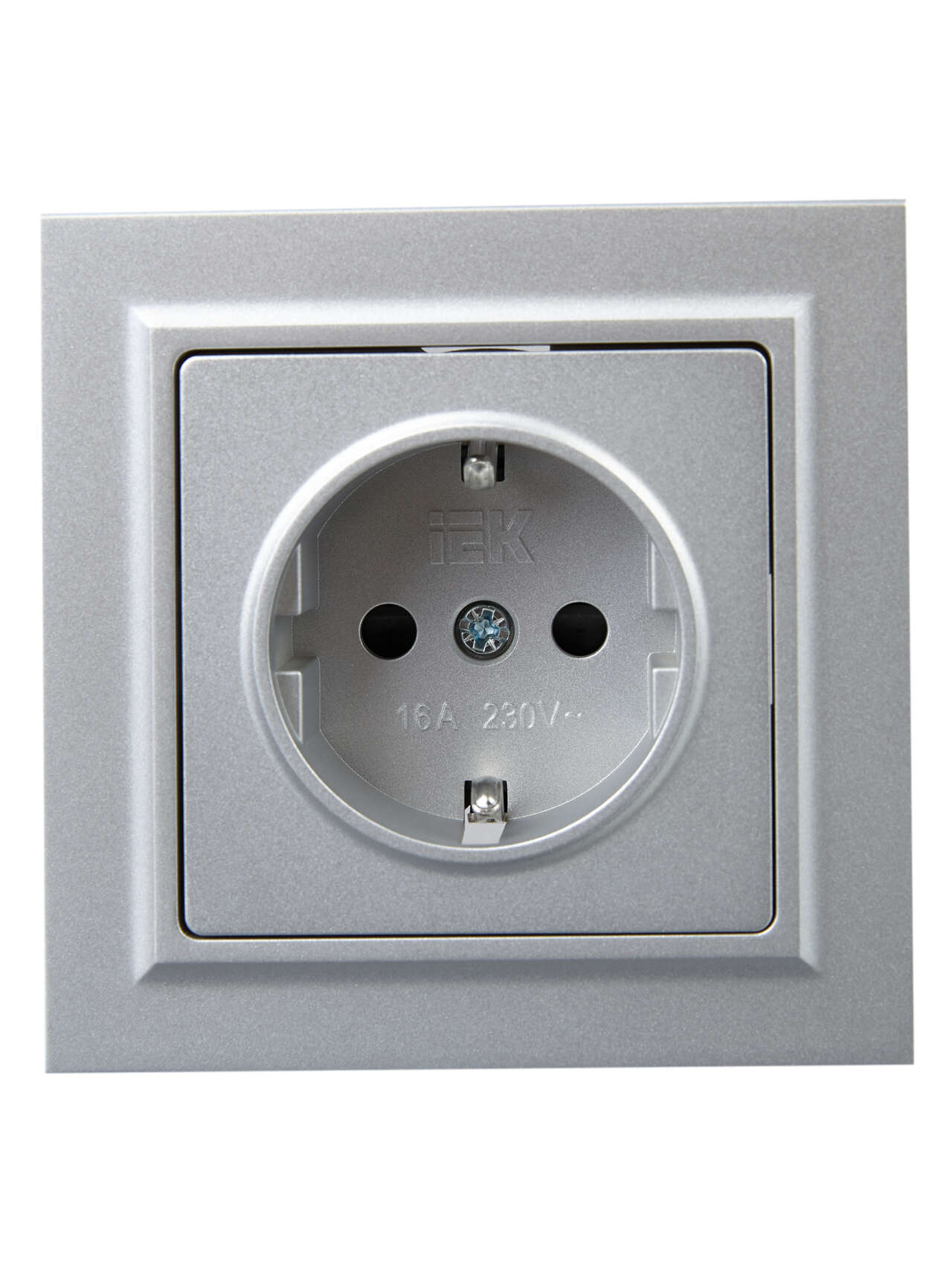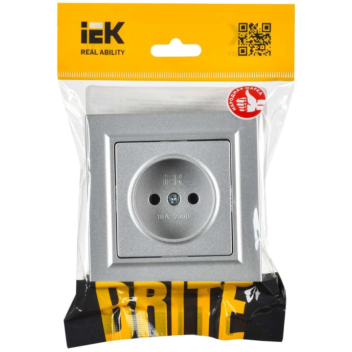 BRITE Розетка 1-местная с заземлением с защитными шторками 16А в сборе РСР14-1-0-БрА алюминий IEK