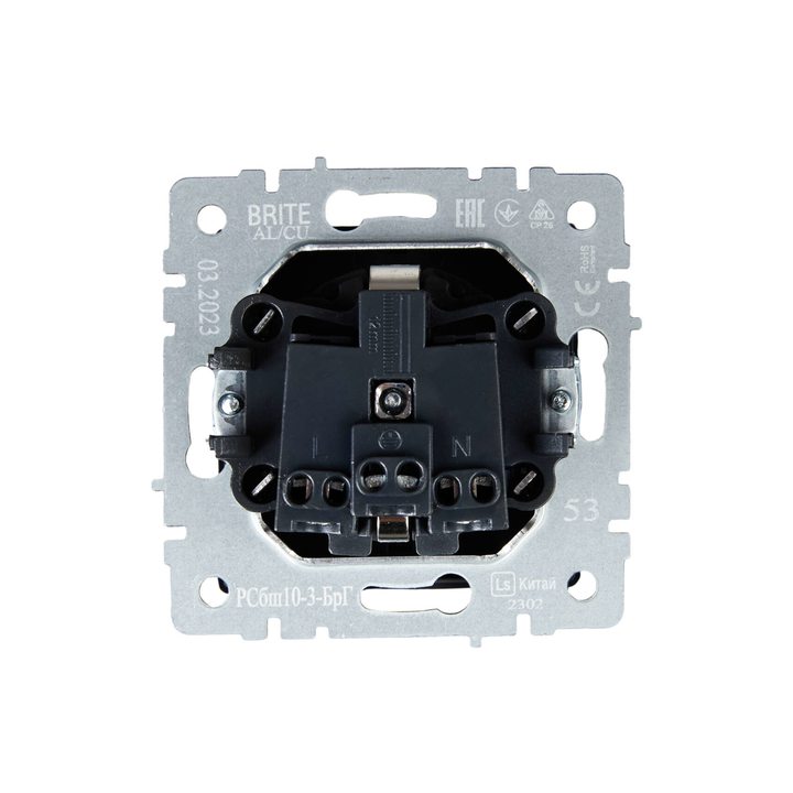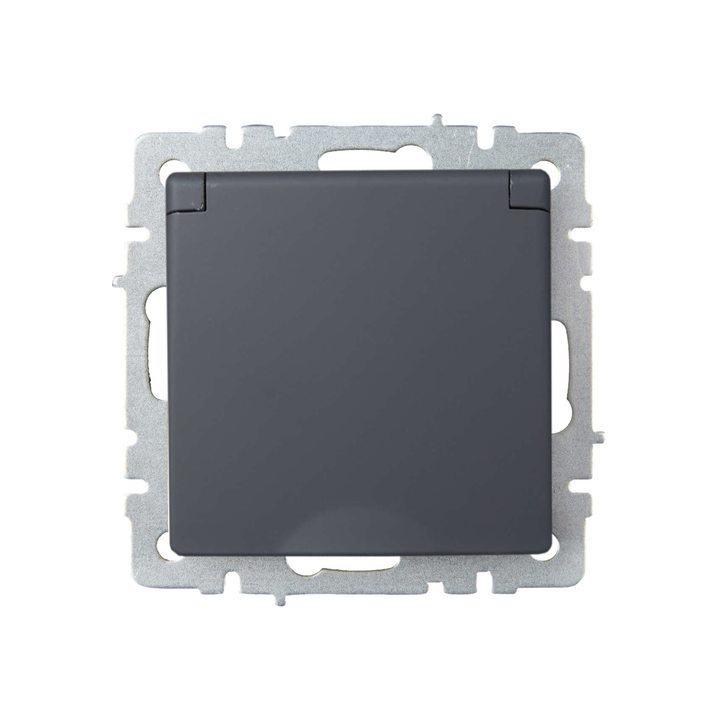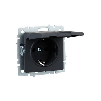 BRITE Розетка 1-местная с заземлением с защитными шторками и крышкой 16А IP20 РСбш10-3-БрГ графит IEK