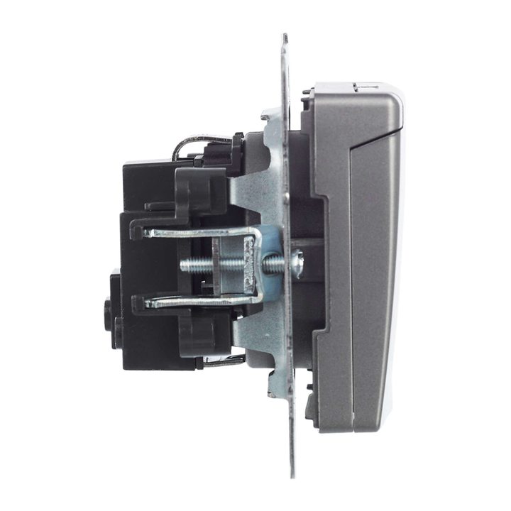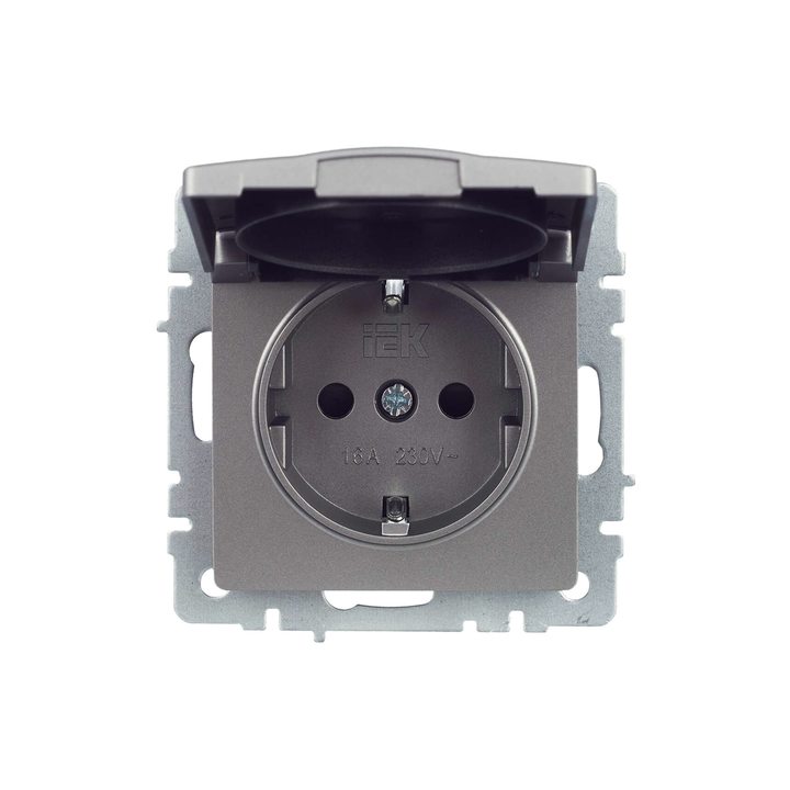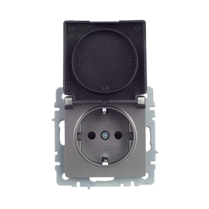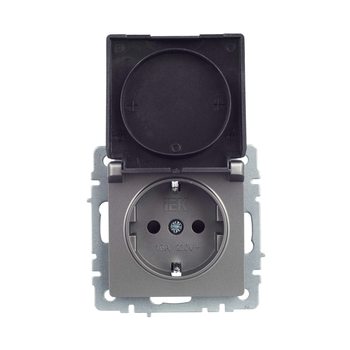 BRITE Розетка 1-местная с заземлением с защитными шторками и крышкой 16А IP20 РСбш10-3-БрС сталь IEK