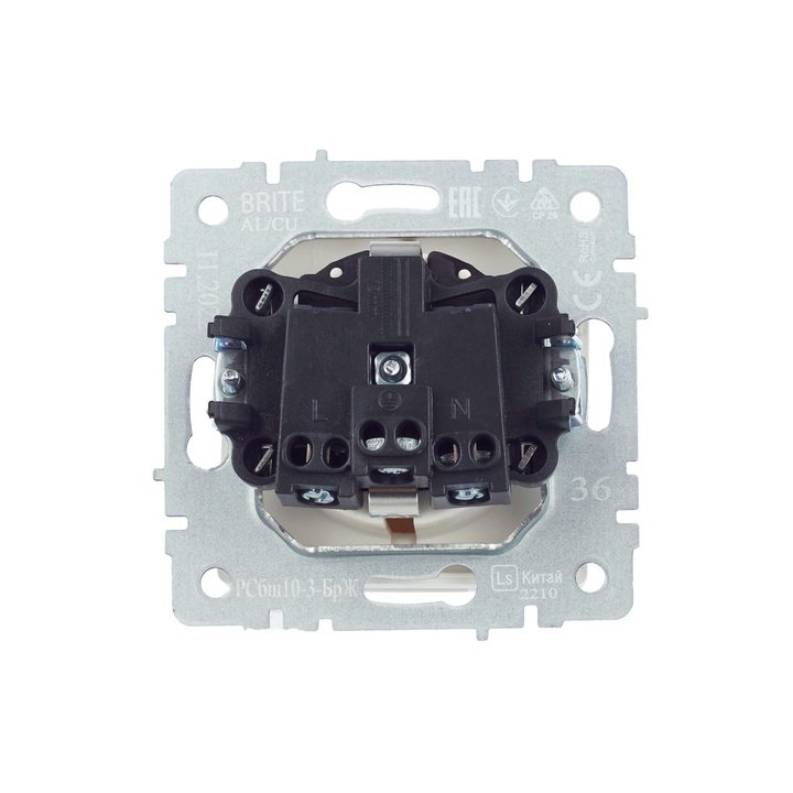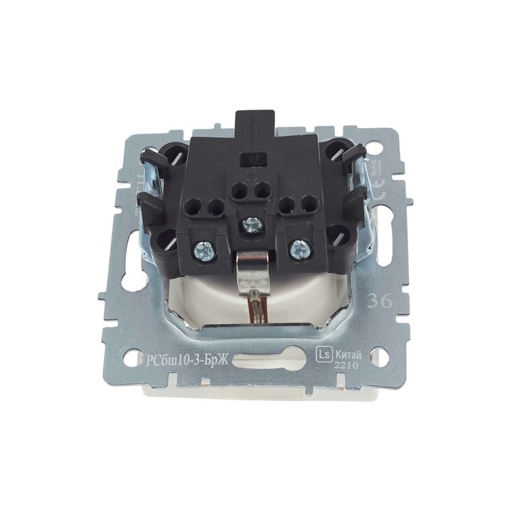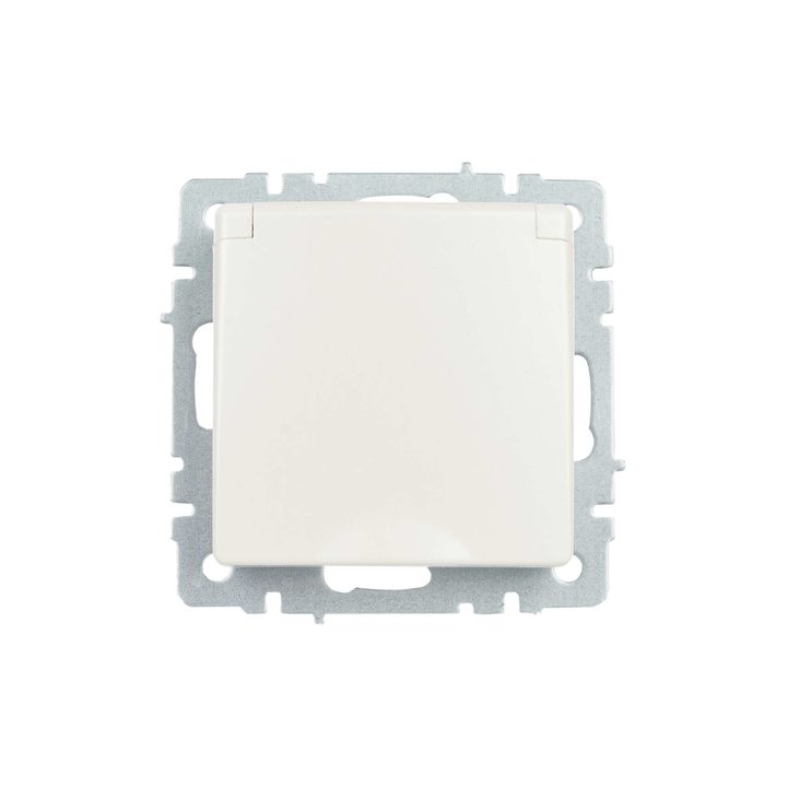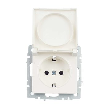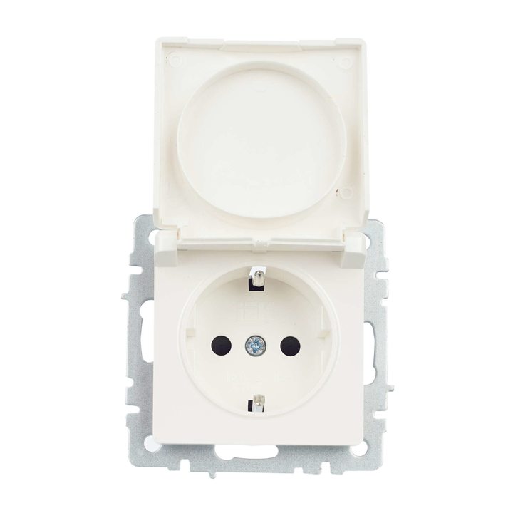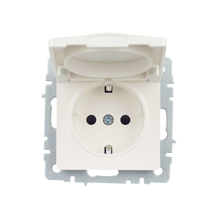 BRITE Розетка 1-местная с заземлением с защитными шторками и крышкой 16А IP20 РСбш10-3-БрЖ жемчуг IEK