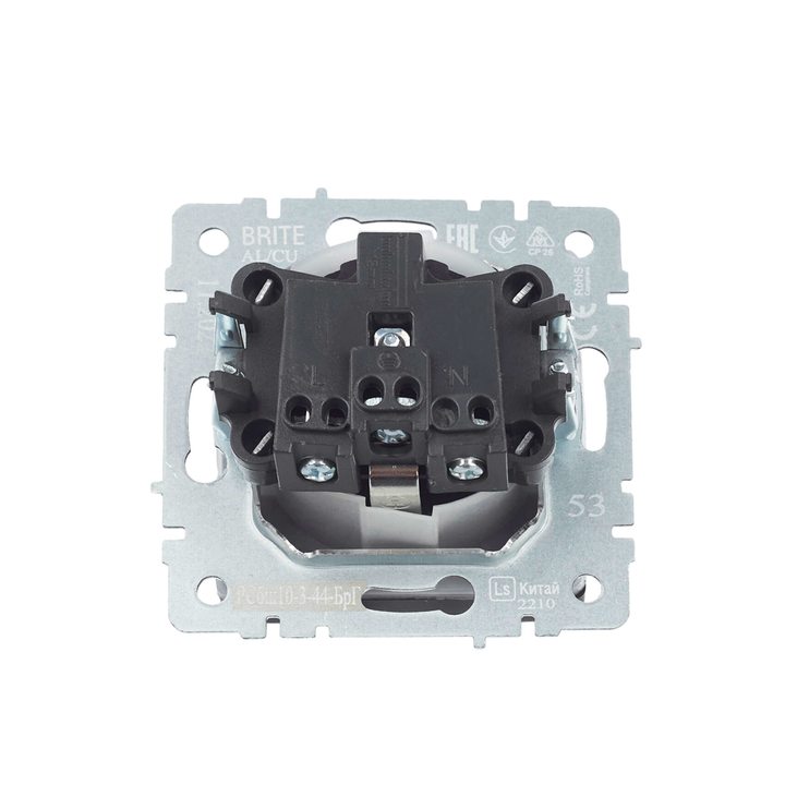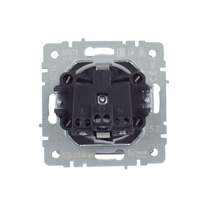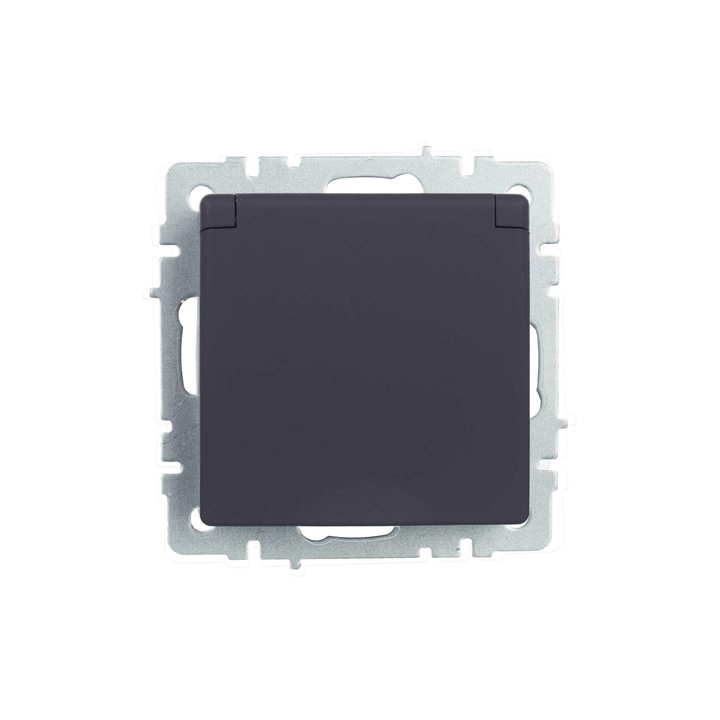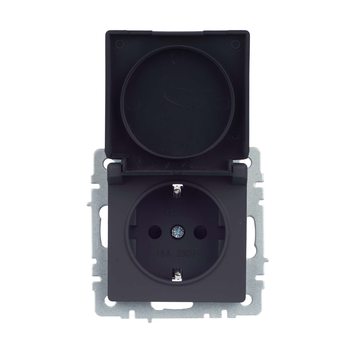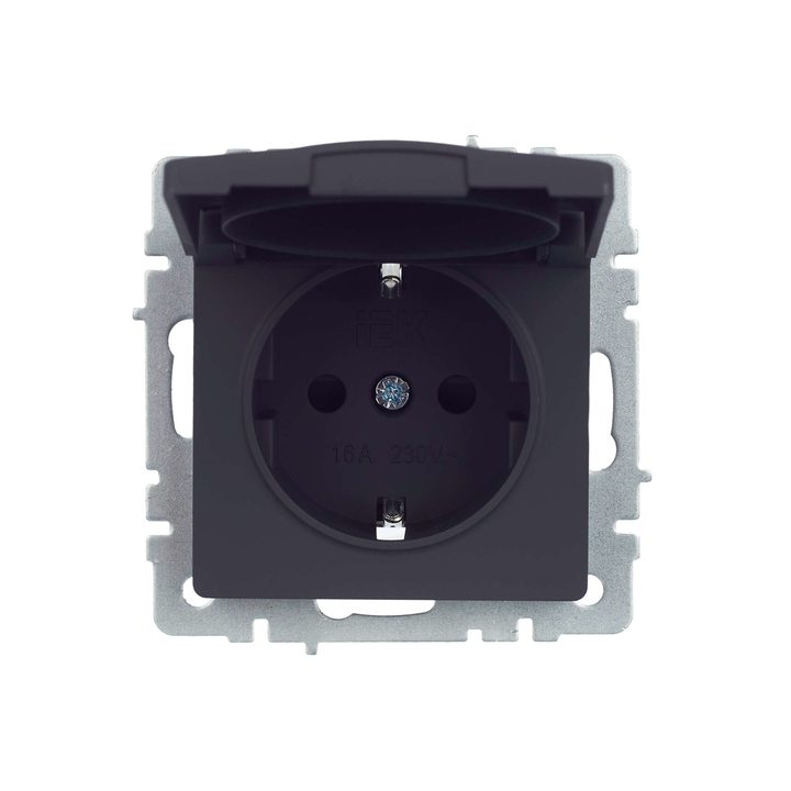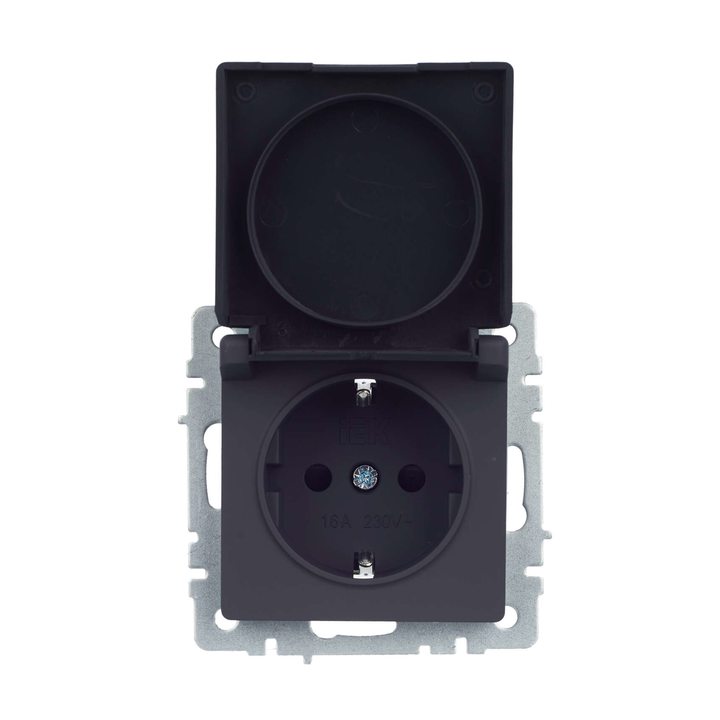 BRITE Розетка 1-местная с заземлением с защитными шторками и крышкой 16А IP44 РСбш10-3-44-БрГ графит IEK