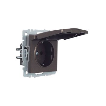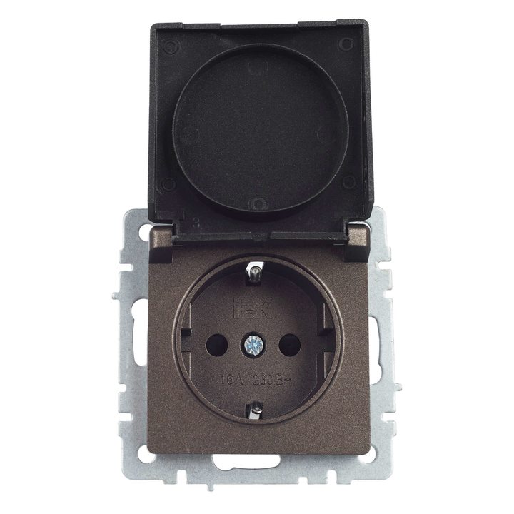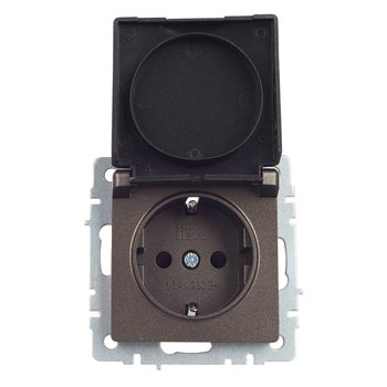 BRITE Розетка 1-местная с заземлением с защитными шторками и крышкой 16А IP44 РСбш10-3-44-БрТБ темная бронза IEK
